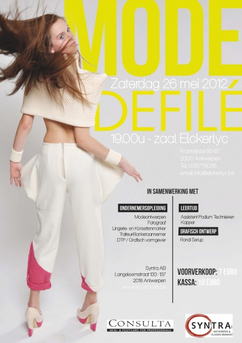Poster for the Syntra fashion show 2012. The show is a collaboration of the Syntra department of fashion, photography and graphic design which come together to create this public event.